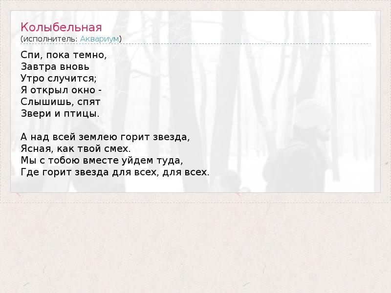 А как ты думаешь, о чем песня "Колыбельная" ?