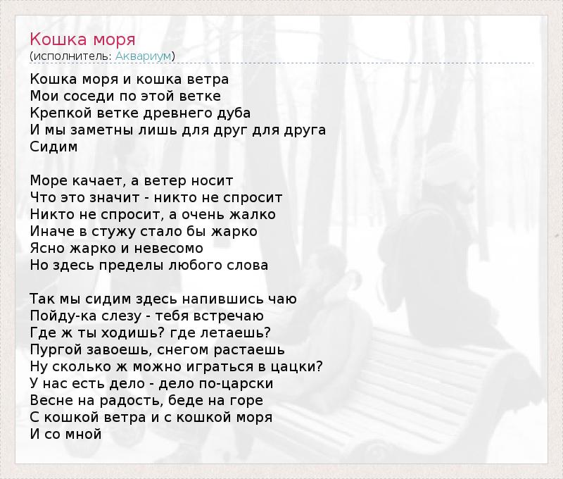 А как ты думаешь, о чем песня "Кошка моря" ?