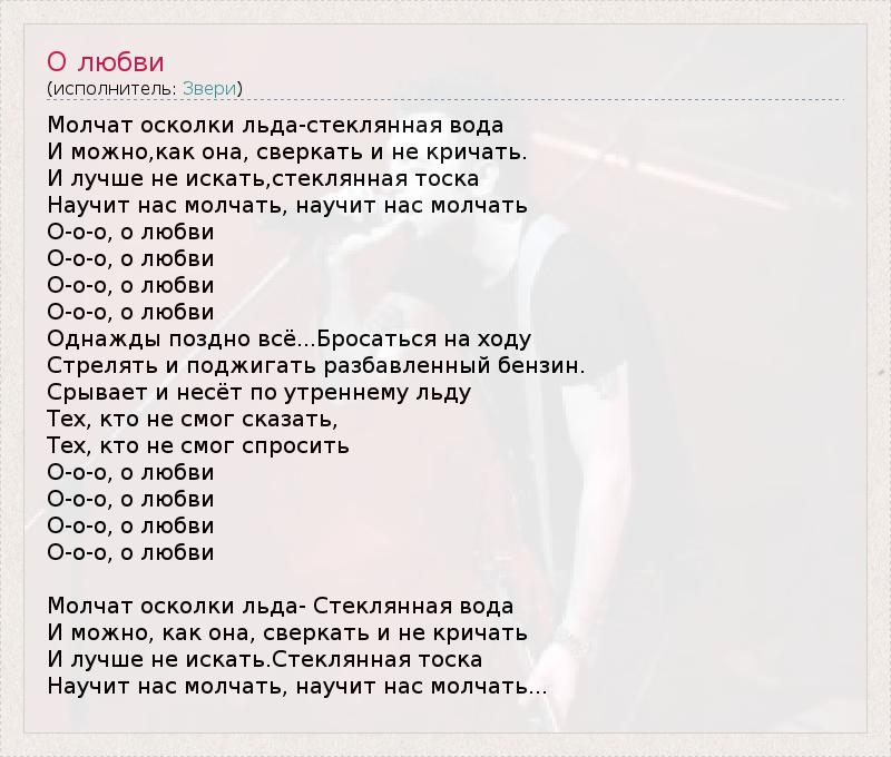Это интересно:Группа «Звери» была создана в 2001 году приезжим из Таганрога Романом Билыком, известным под псевдонимом Рома Зверь. Продюсером стал композитор Александр Войтинский, ранее сотрудничавший с продюсером группы «Тату» Иваном Шаповаловым. Музыкантов группы они набрали через обьявления в сети Интернет.Группа вскоре выпустила клип «Для тебя», видео для которого было снято раньше, чем написана... продолжение