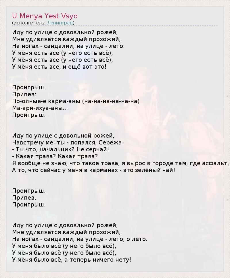 А как ты думаешь, о чем песня "U Menya Yest Vsyo" ?