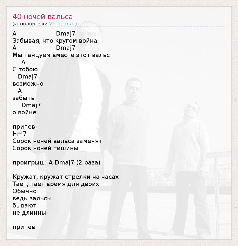 А как ты думаешь, о чем песня "40 ночей вальса" ?