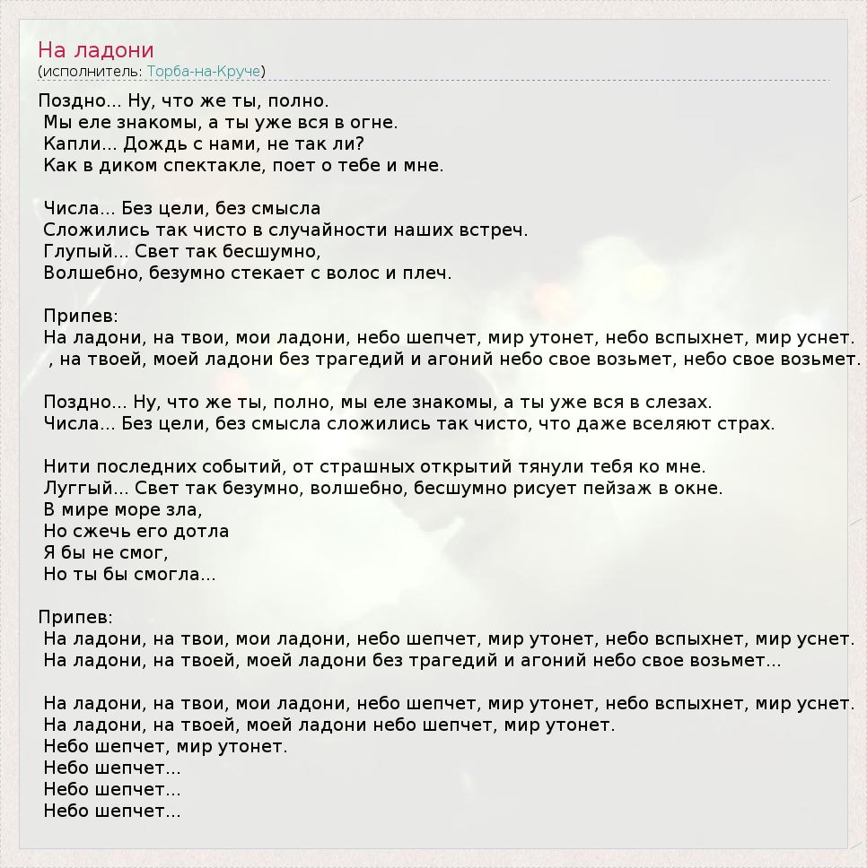 На ладони, на твоей, моей ладони небо шепчет, мир утонет.