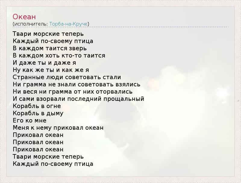 А как ты думаешь, о чем песня "Океан" ?