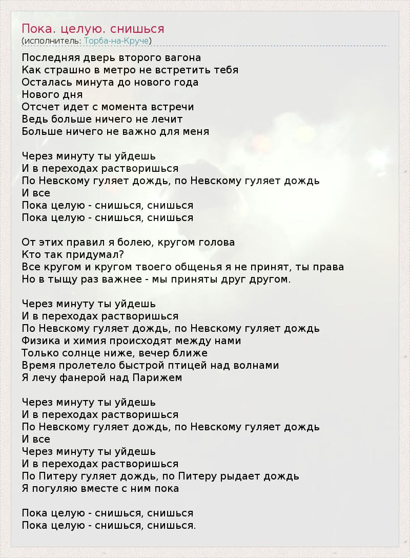 ГлавнаяИсполнителиТорба-на-КручеПока. целую. снишься