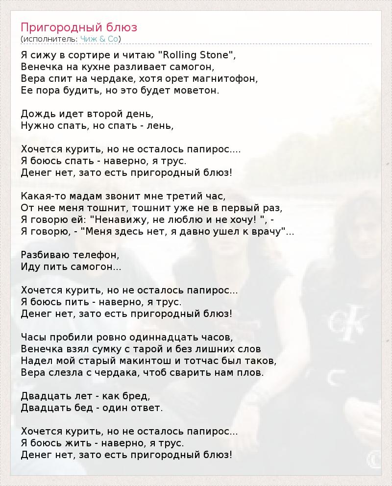А как ты думаешь, о чем песня "Пригородный блюз" ?