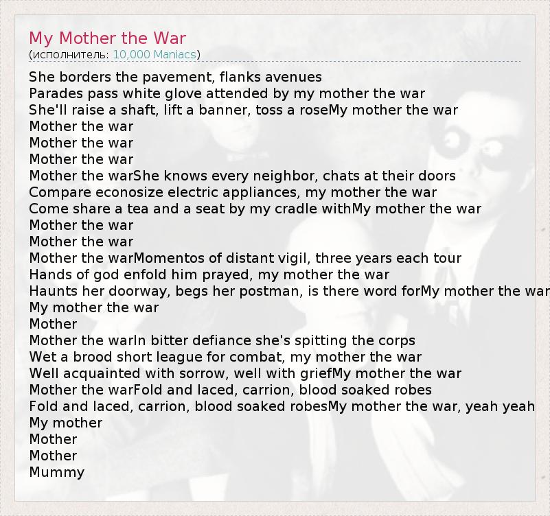 А как ты думаешь, о чем песня "My Mother the War" ?