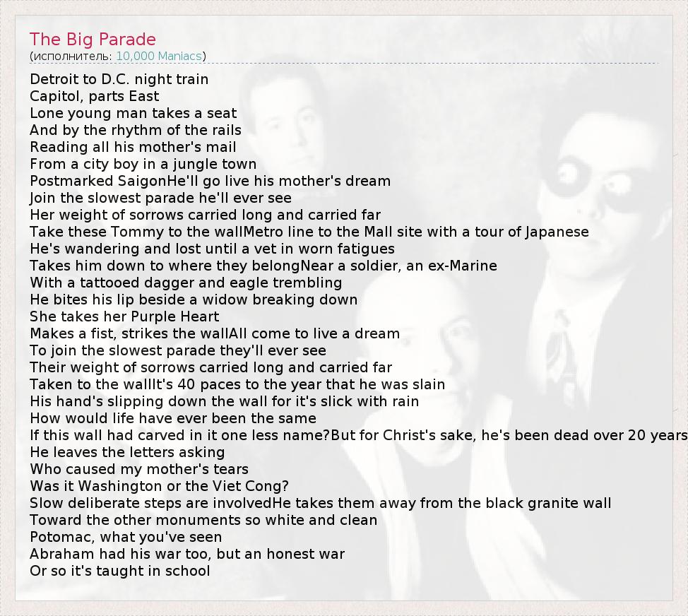 А как ты думаешь, о чем песня "The Big Parade" ?