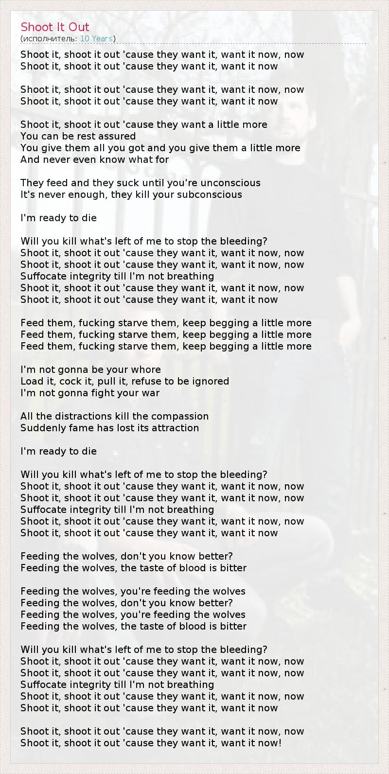 А как ты думаешь, о чем песня "Shoot It Out" ?