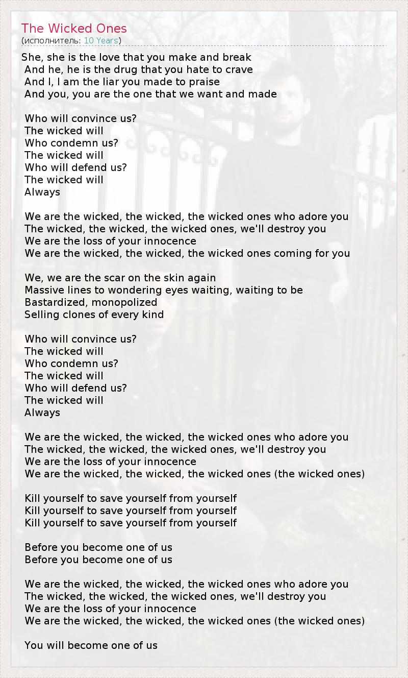 А как ты думаешь, о чем песня "The Wicked Ones" ?