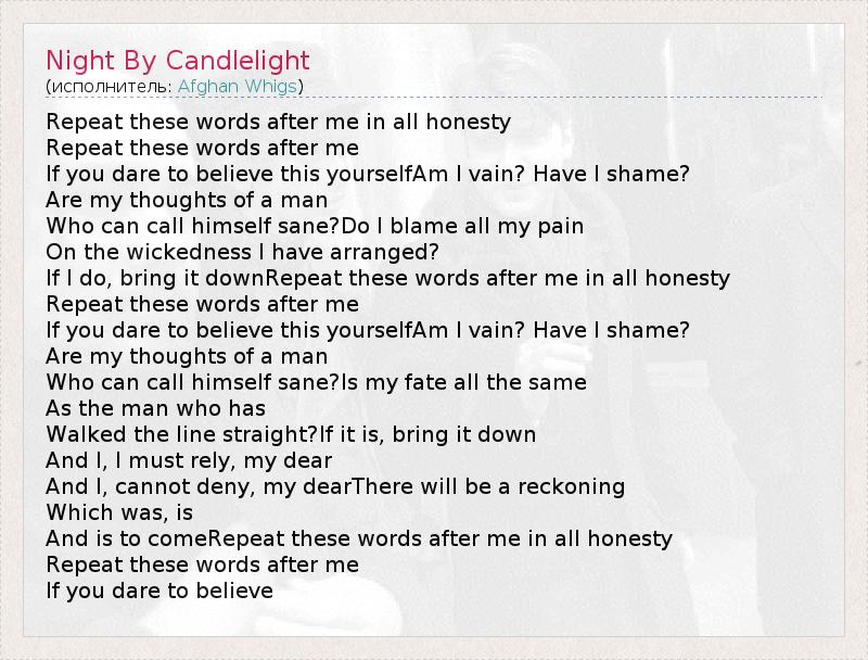 А как ты думаешь, о чем песня "Night By Candlelight" ?