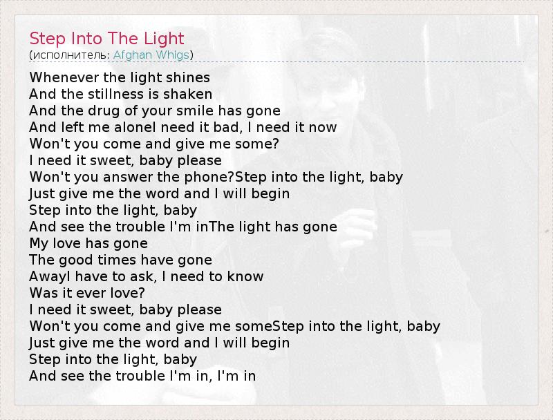 А как ты думаешь, о чем песня "Step Into The Light" ?