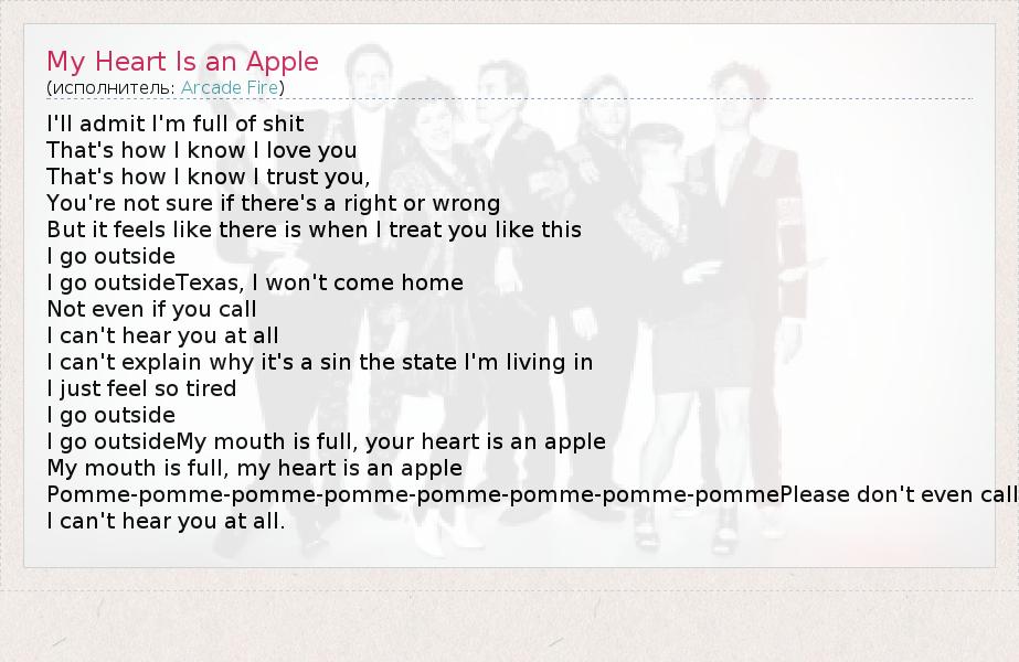 А как ты думаешь, о чем песня "My Heart Is an Apple" ?
