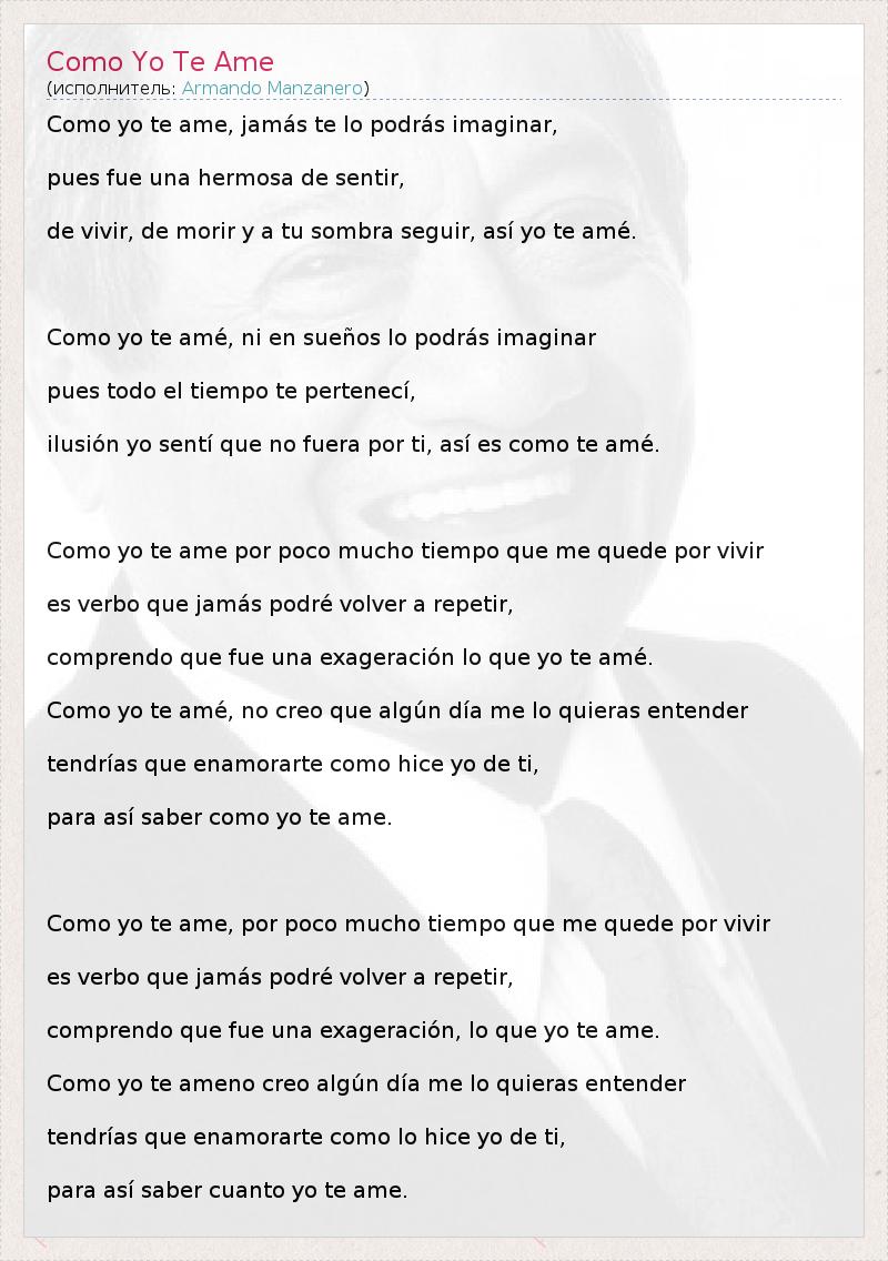 А как ты думаешь, о чем песня "Como Yo Te Ame" ?