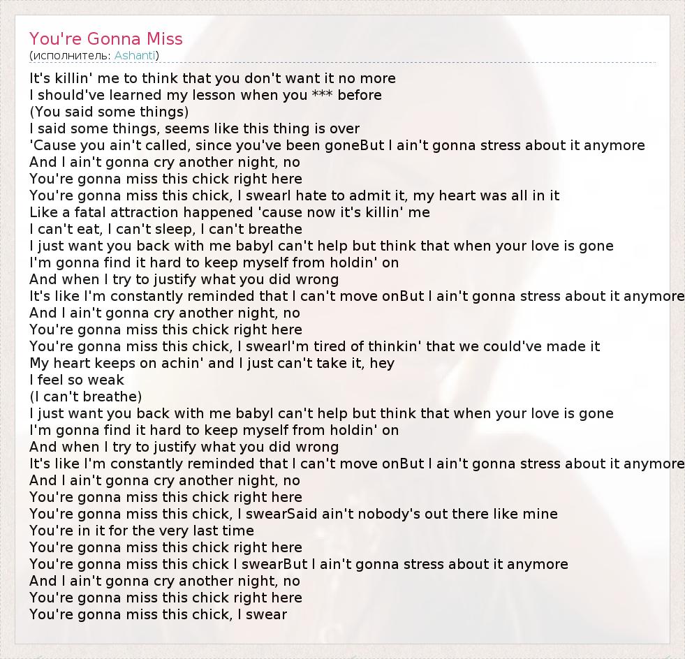 А как ты думаешь, о чем песня "You're Gonna Miss" ?