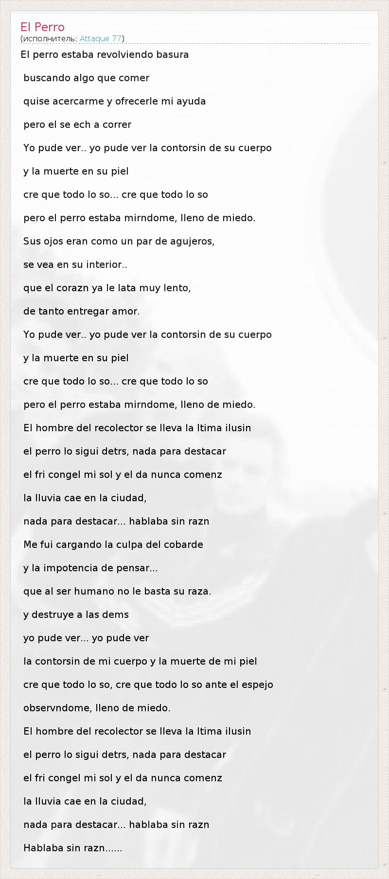 Это интересно:Культовая аргентинская панк-рок группа. Пожалуй, самая значимая и влиятельная группа Латинской Америки, играющая в стиле панк-рок, образовалась в 1987 году в Буэнос-Айресе и существует по сей день.Состав основателей группы:* Demián "Ciro" Pertusi − Bass (1987-1989)/Lead vocals (1989-1993) / Lead vocals & Rhythm guitar (1993-2009)* Federico Pertusi − lead vocals (1987-1989)* Daniel Caffieri - guitar (1987-1988)* Claudio Leiva - drums (1987-1988)Раннее творчество... продолжение