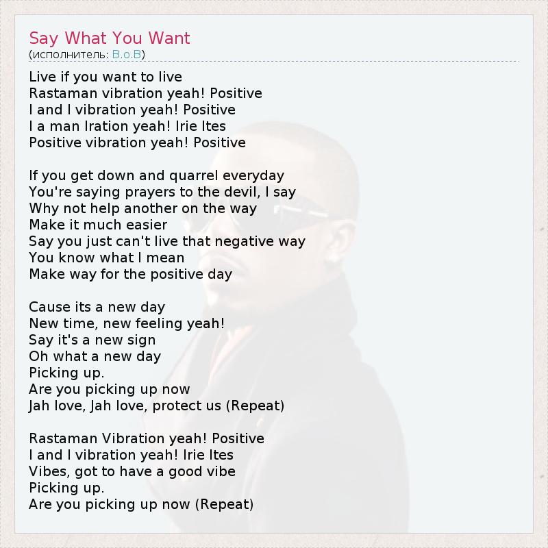 А как ты думаешь, о чем песня "Say What You Want" ?