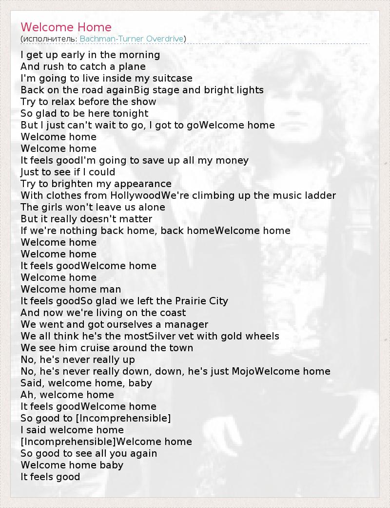 А как ты думаешь, о чем песня "Welcome Home" ?