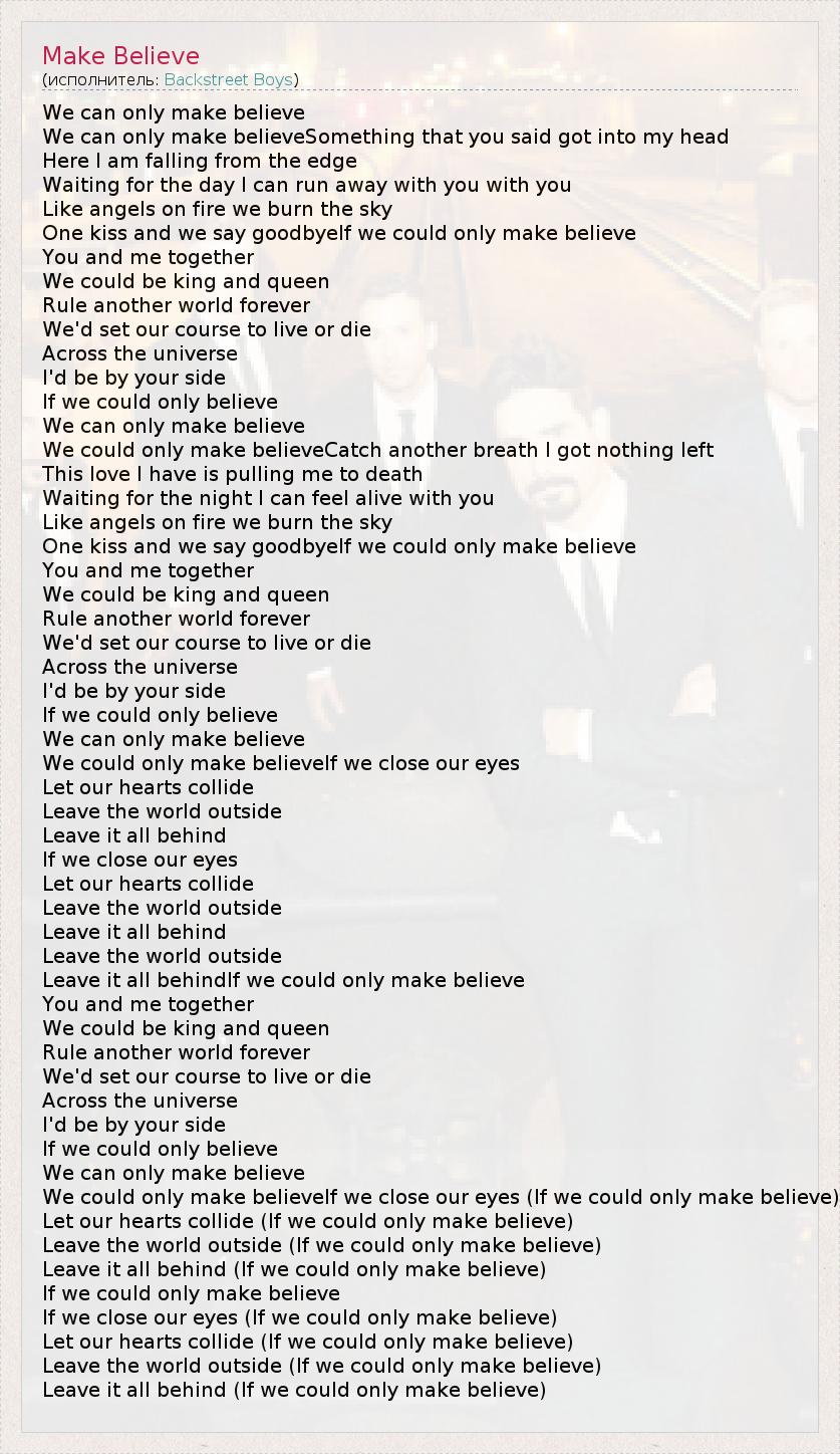 In a World Like This is the eighth (seventh in the United States) studio album from Backstreet Boys, one of the most successful boy bands of their generation. This follow-up to 2009's This Is Us once again features the full original line-up, with Kevin Richardson rejoining following his 2006 departure. In a World Like This is packed full of pop ballads and dancefloor fillers., Rovi
