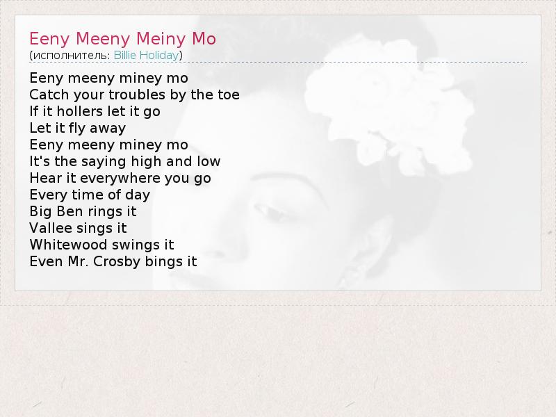 А как ты думаешь, о чем песня "Eeny Meeny Meiny Mo" ?