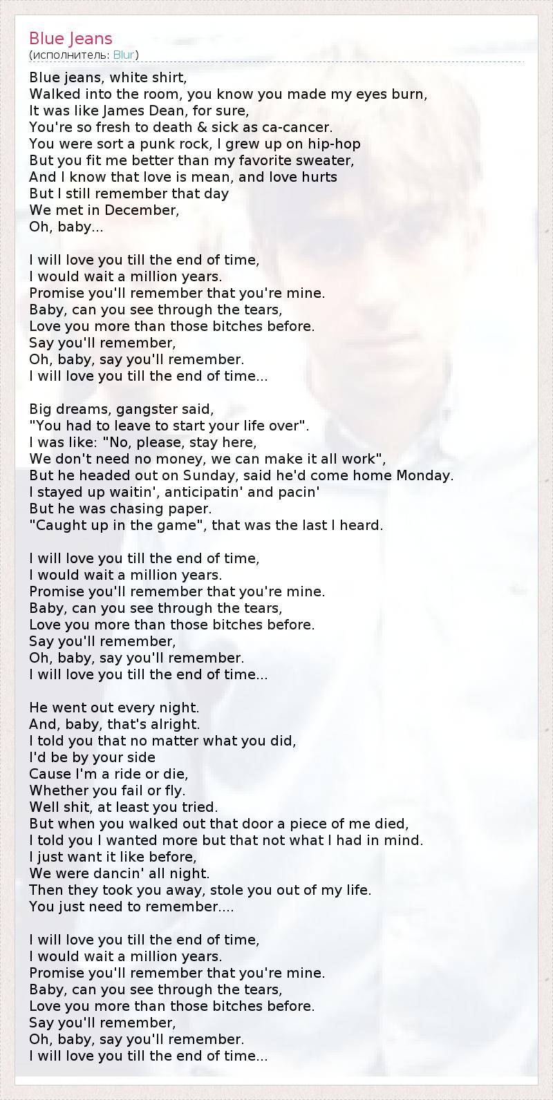 А как ты думаешь, о чем песня "Blue Jeans" ?