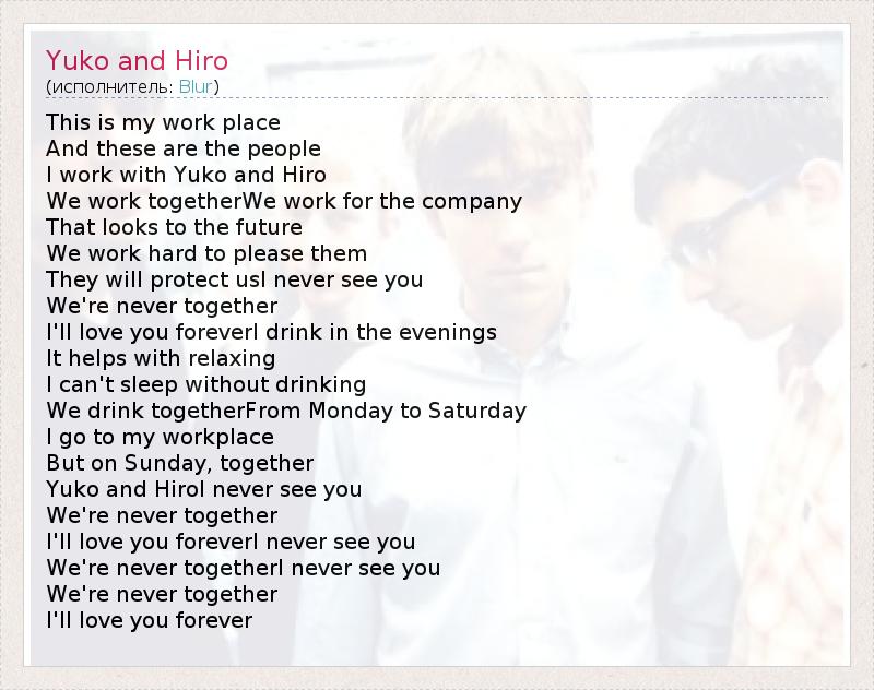А как ты думаешь, о чем песня "Yuko and Hiro" ?