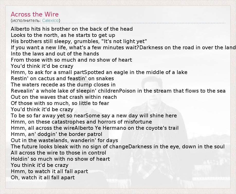 А как ты думаешь, о чем песня "Across the Wire" ?