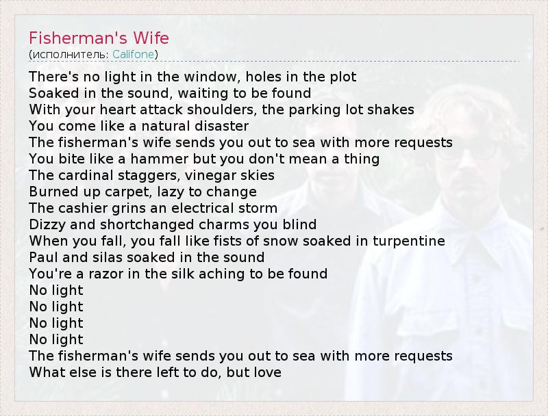 А как ты думаешь, о чем песня "Fisherman's Wife" ?