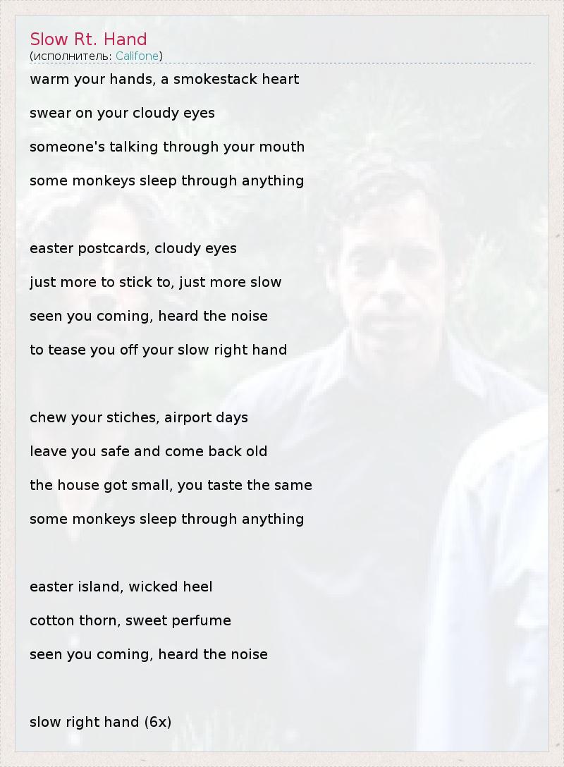 А как ты думаешь, о чем песня "Slow Rt. Hand" ?