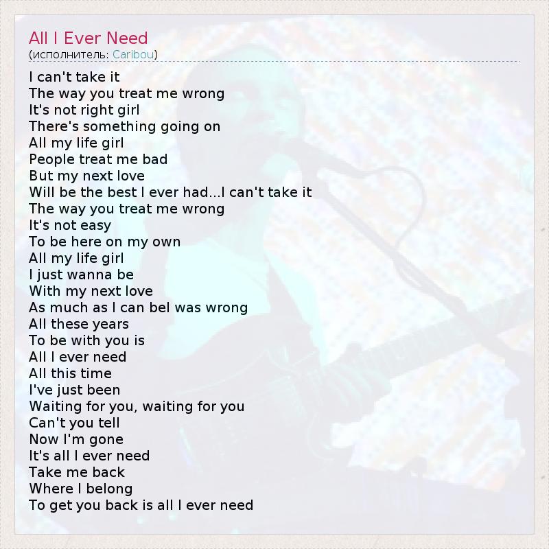 А как ты думаешь, о чем песня "All I Ever Need" ?