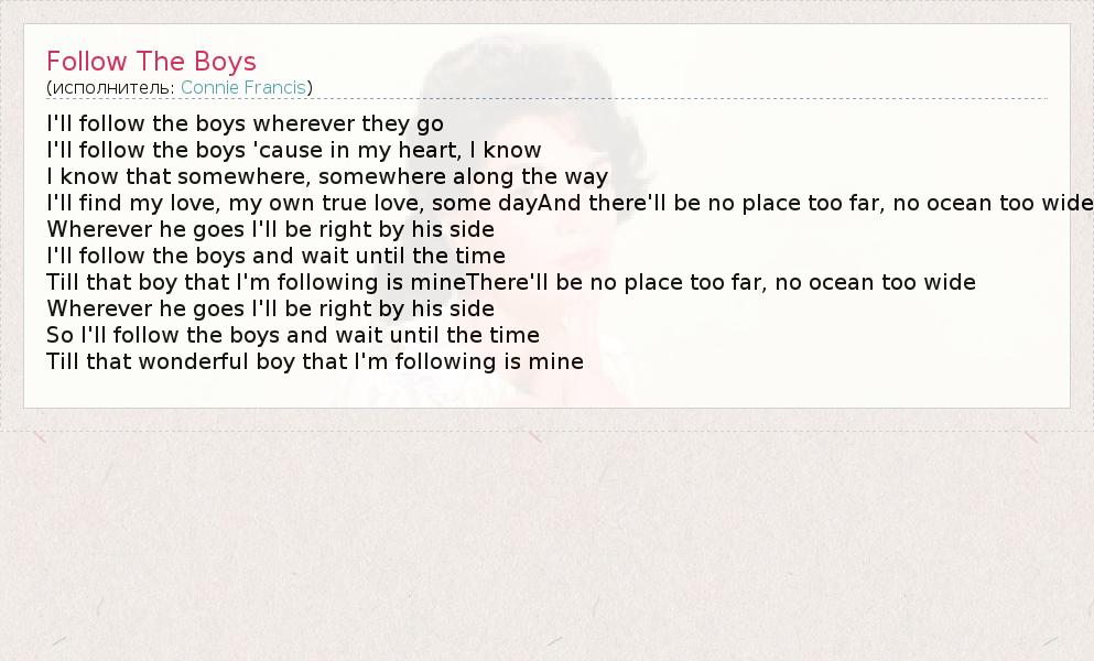 А как ты думаешь, о чем песня "Follow The Boys" ?