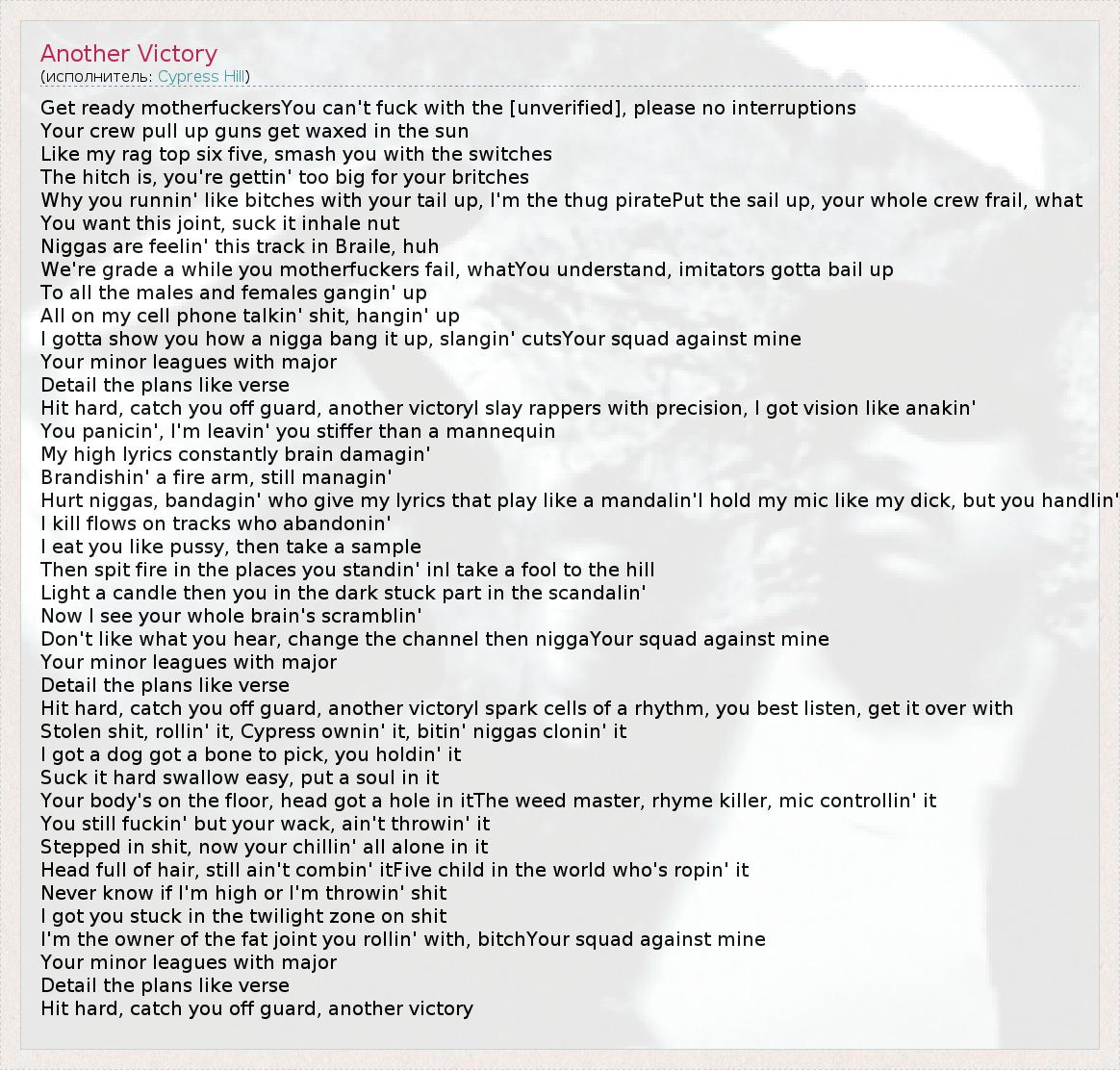 Hit hard, catch you off guard, another victoryI spark cells of a rhythm, you best listen, get it over with