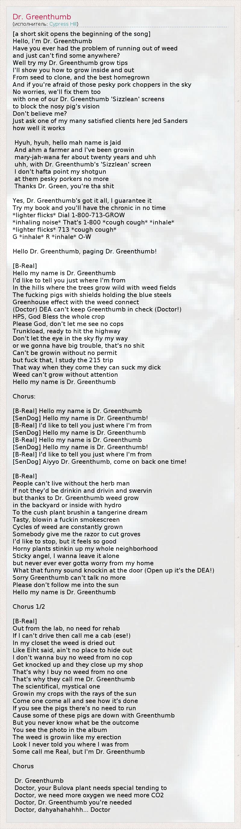 А как ты думаешь, о чем песня "Dr. Greenthumb" ?