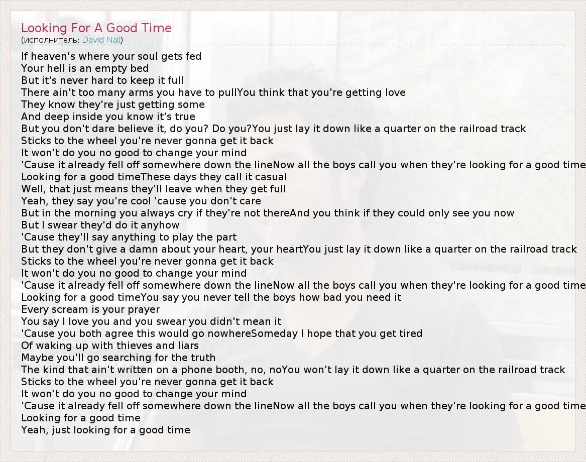 А как ты думаешь, о чем песня "Looking For A Good Time" ?