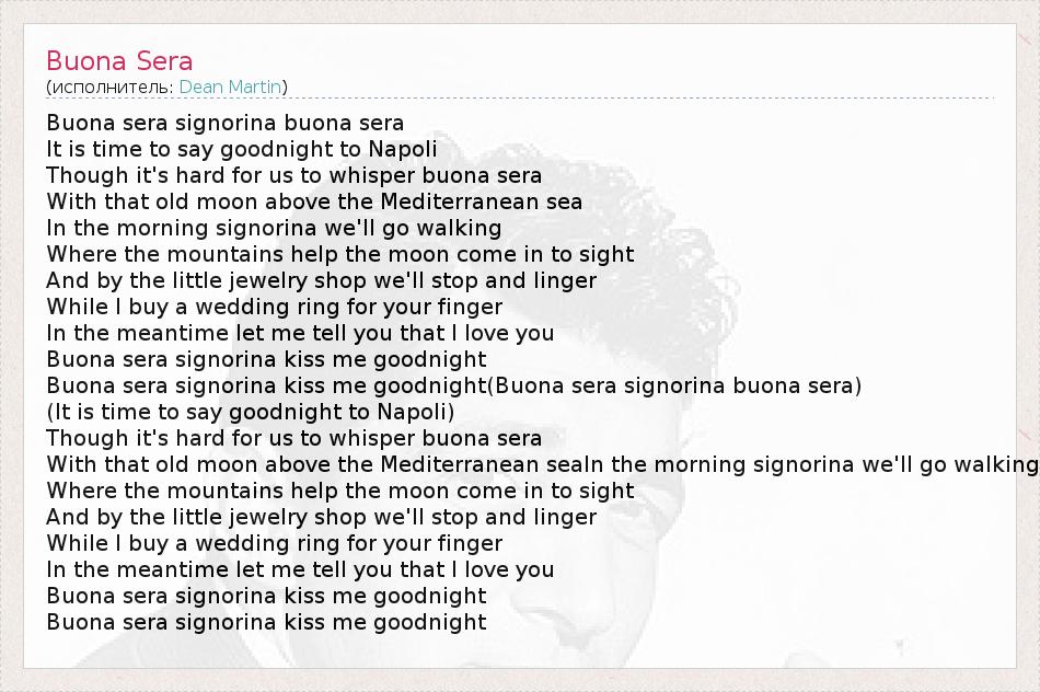 А как ты думаешь, о чем песня "Buona Sera" ?