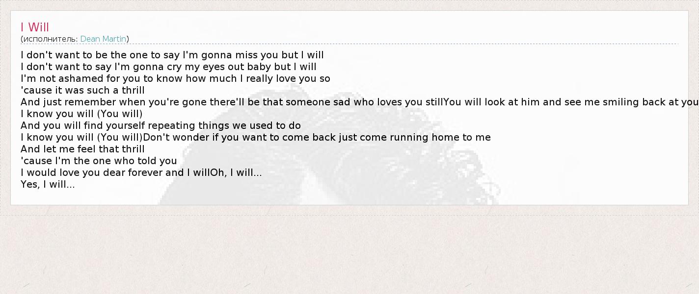 Это интересно:Дино Пол Крочетти (англ. Dino Paul Crocetti), более известный как Дин Ма́ртин (англ. Dean Martin) родился 7 июня 1917 года в Стобенвиле, штат Огайо, США. В молодости профессионально занимался боксом, выступал на матчах, любил карточные игры. В ранние годы планировал в будущем стать певцом, актёром. Долгое время выступал в ночных клубах родного города, исполняя разнообразные песни. Позже начал гастролировать... продолжение