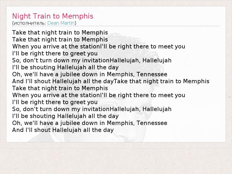 А как ты думаешь, о чем песня "Night Train to Memphis" ?