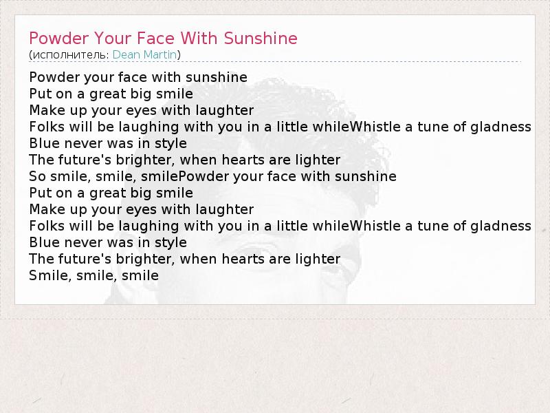 ГлавнаяИсполнителиDean MartinPowder Your Face With Sunshine