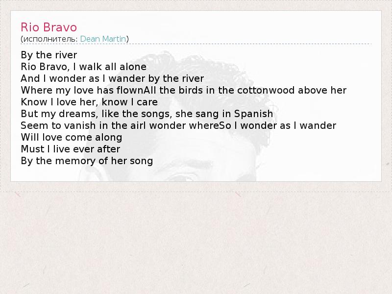 А как ты думаешь, о чем песня "Rio Bravo" ?