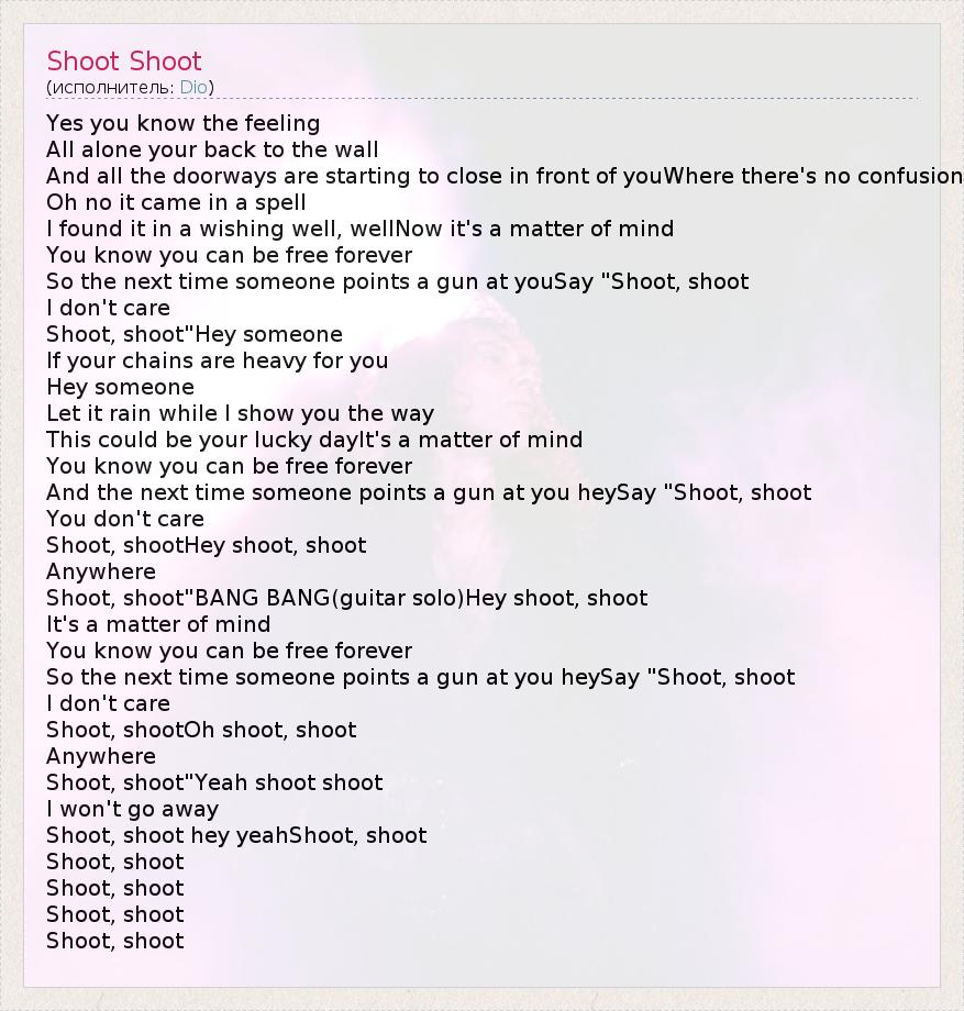 А как ты думаешь, о чем песня "Shoot Shoot" ?