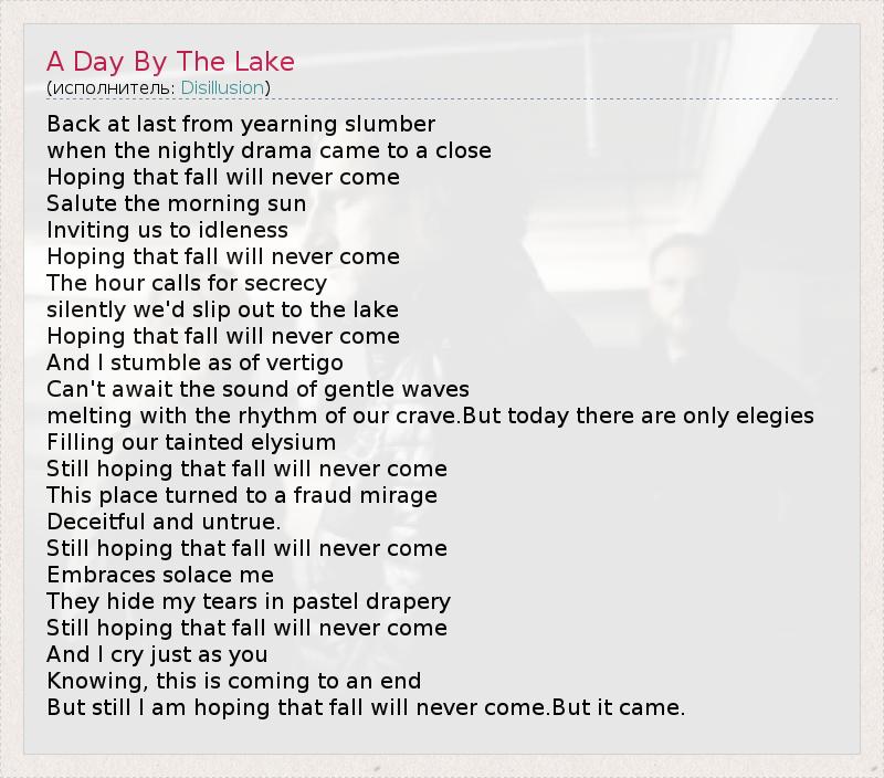 А как ты думаешь, о чем песня "A Day By The Lake" ?