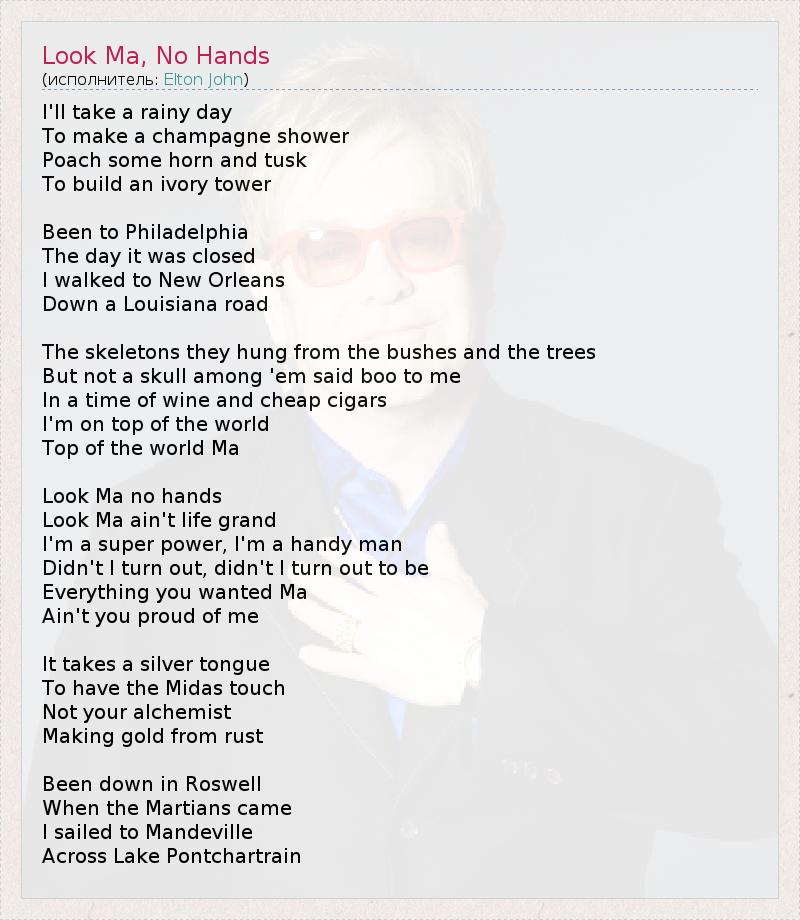 А как ты думаешь, о чем песня "Look Ma, No Hands" ?
