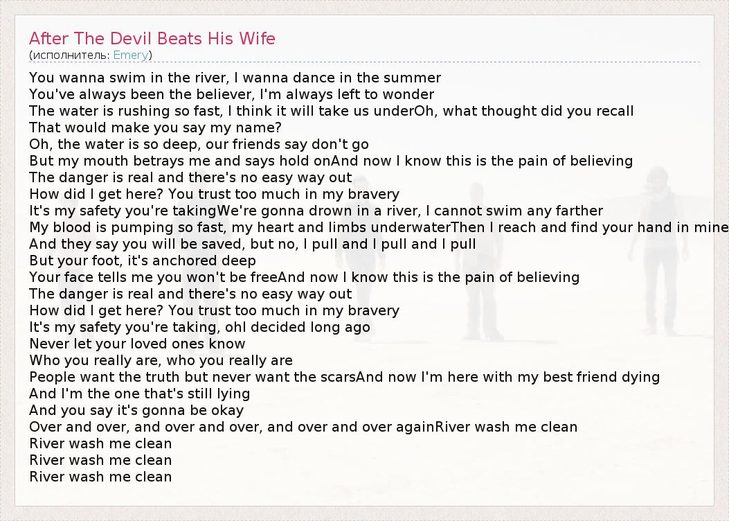 А как ты думаешь, о чем песня "After The Devil Beats His Wife" ?