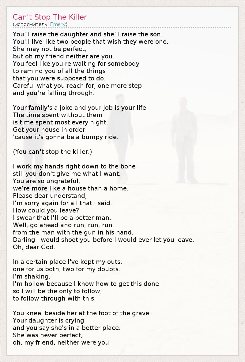 ГлавнаяИсполнителиEmeryCan't Stop The Killer