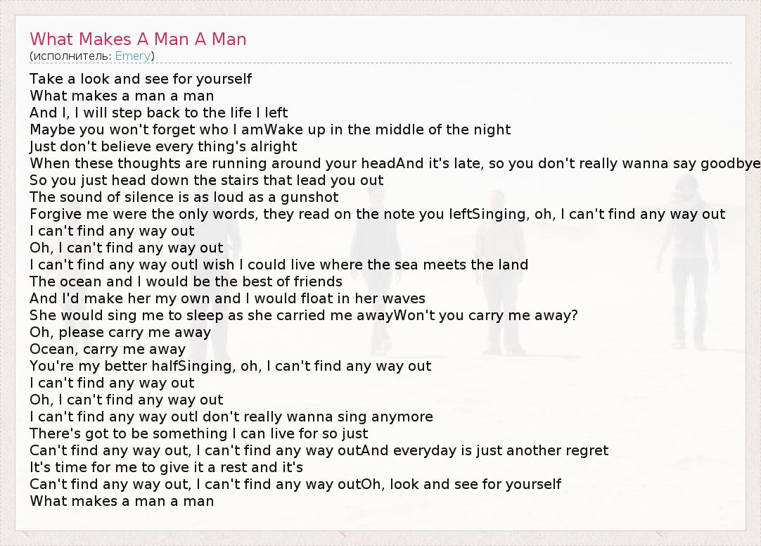 ГлавнаяИсполнителиEmeryWhat Makes A Man A Man