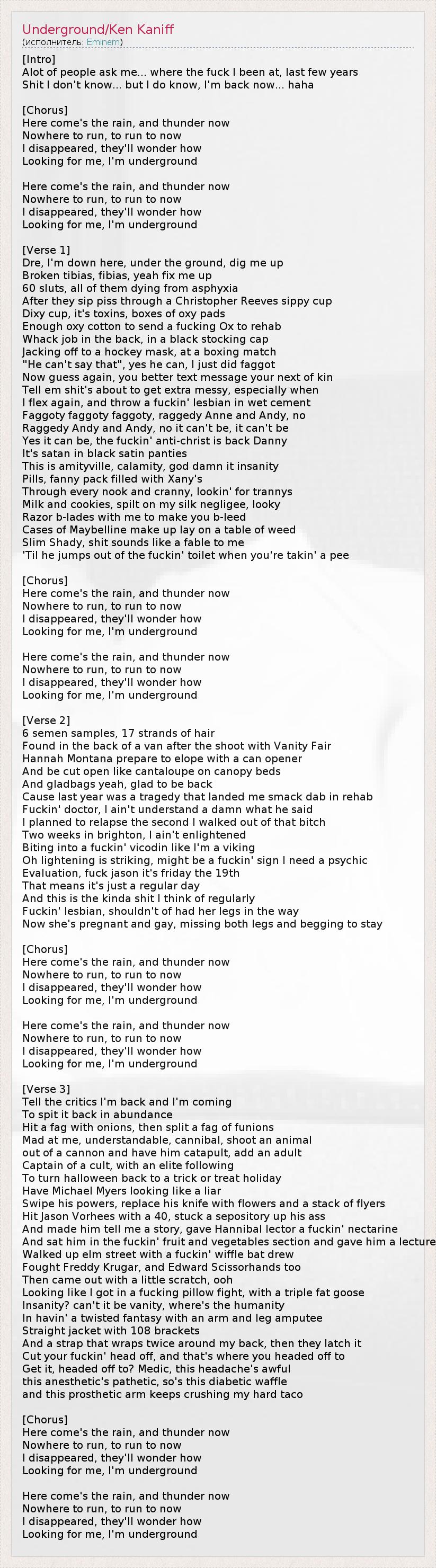 ГлавнаяИсполнителиEminemUnderground/Ken Kaniff