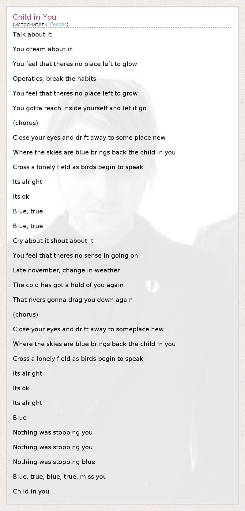 Это интересно:Feeder - бритрок-группа из Южного Уэльса. Образована в 1995 году двумя старыми друзьями - вокалистом Грантом Николасом и ударником Джоном Ли. Чуть позже к группе примкнул Така Хиросе, японец по происхождению. После выпуска двух демо-альбомов Two Colours (1995) и Swim (1996) ребята приглянулись лейблу Echo Records. Подписав контракт с Echo, Feeder стали записывать дебютный альбом Polythene. Не сказать, что слишком удачный,... продолжение