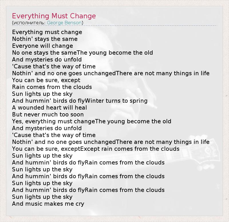 А как ты думаешь, о чем песня "Everything Must Change" ?