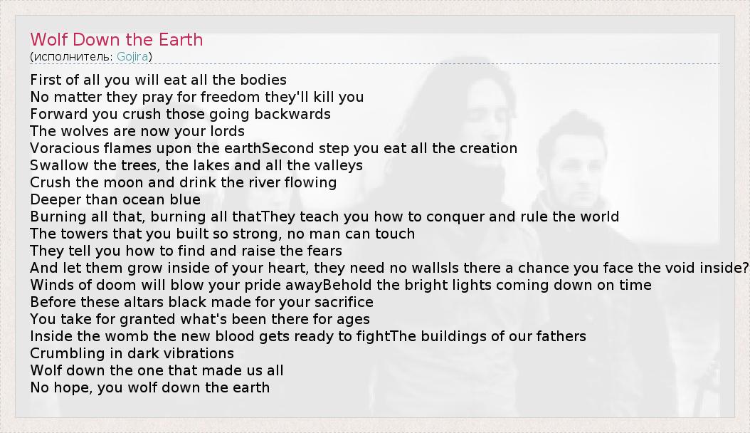ГлавнаяИсполнителиGojiraWolf Down the Earth