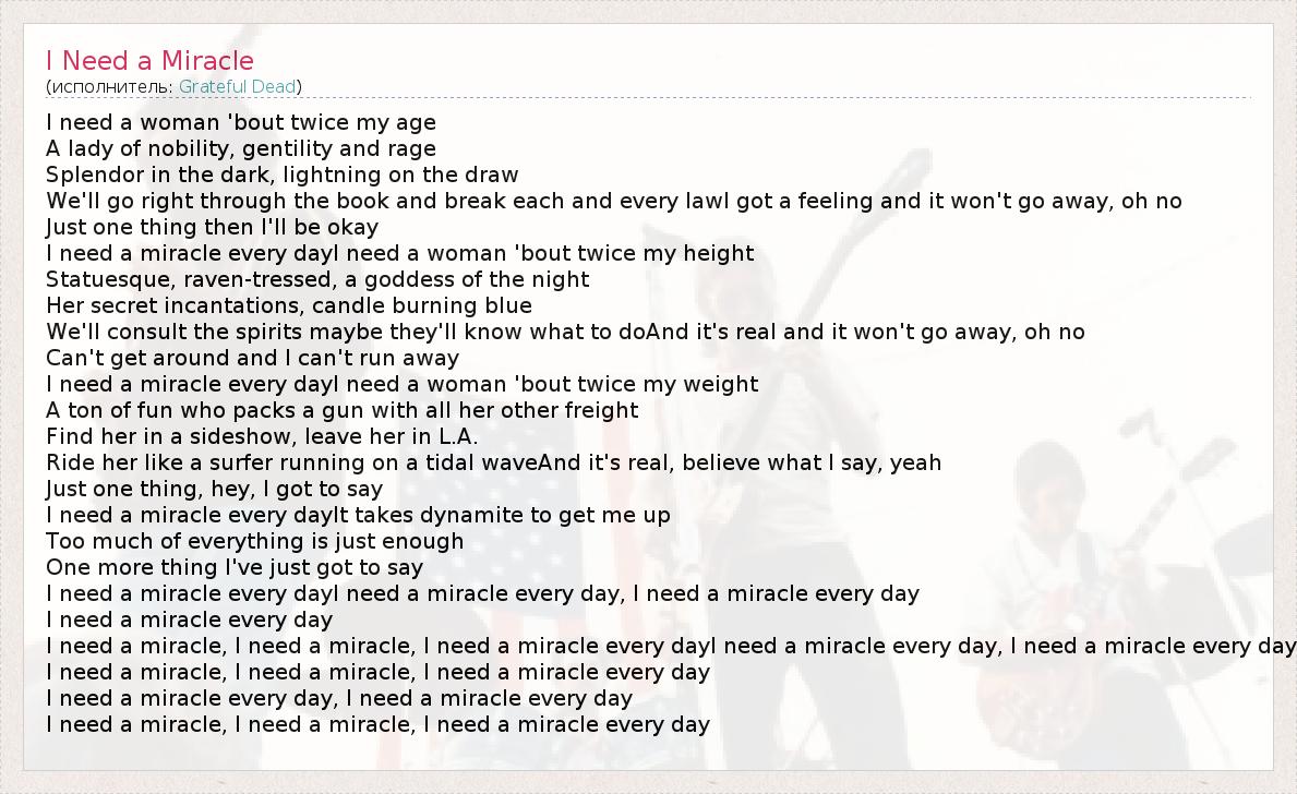 А как ты думаешь, о чем песня "I Need a Miracle" ?
