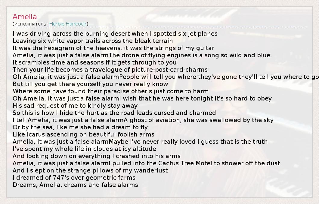 А как ты думаешь, о чем песня "Amelia" ?
